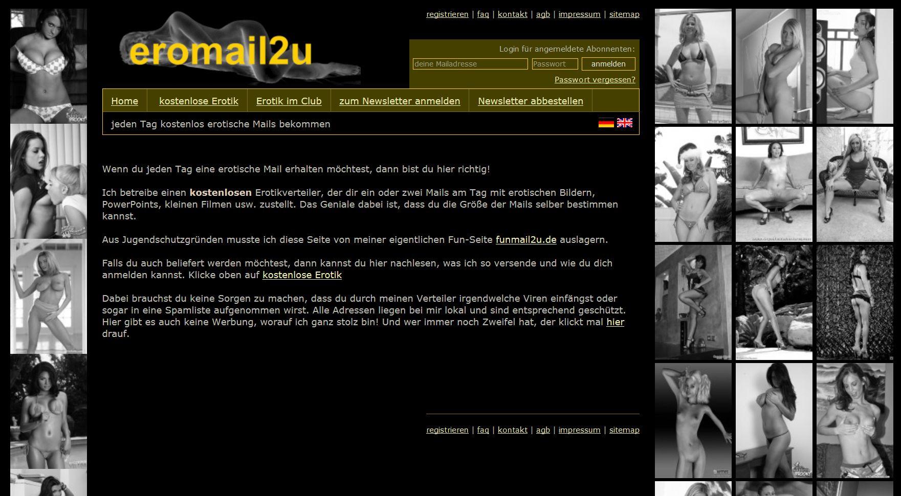 Erotische Mails - Ein Ableger des Fun-Verteilers, der aus rechtlichen Gründen getrennt werden musste. Hier bekommt man kostenlos und unverbindlich täglich Mails mit erotischem Inhalt zugestellt.