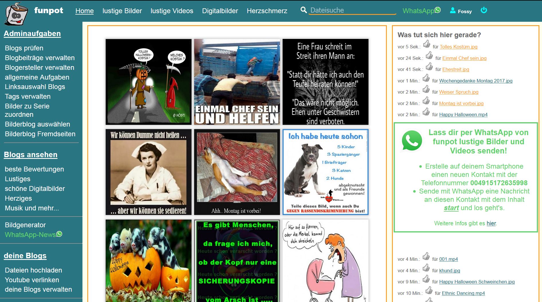 Deutschlands größte Community für aktiven Dateienaustausch. Diese Seite ist aus dem Funverteiler entstanden. Denn wer viele Dateien verteilt, dem werden auch viele geschickt. So enstand eine Community (eine Internetgemeinde), in der die Mitglieder spaßige oder sehenswerte Texte und Dateien austauschen. Das ist so ähnlich wie YouTube, wo Videos von vielen Menschen eingestellt und von allen angeschaut werden. So ähnlich ist das bei funpot, nur dass so ziemlich alle Arten von Dateien eingestellt werden.